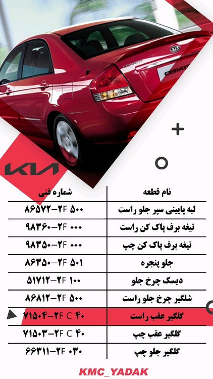 سبد یک قطعات خودرو کیا سراتو 2008و2009